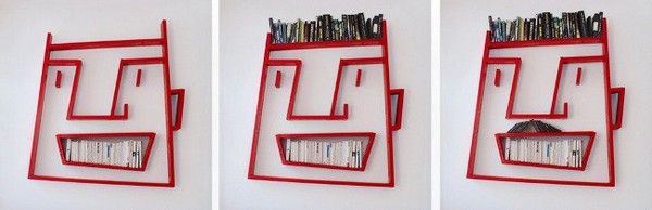 This funny bookshelf is called The Face Shelving created by Alexi Mccarth. Adding fun to room by shaping face by the rushing of books and other objects over it. Minimal design but still attractive and cool.