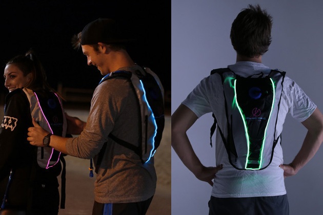 For the more adventurous hiker, runner or party-goer–here is the answer to all of your hydration needs. This super sleek, Light Up Hydration Pack has everything you need in a CamelBak, with one additional, amazingly useful feature– it LIGHTS UP! The main compartment on this Hydration Pack is lined in Electroluminescent Wire, and comes in seven ultra bright color options. The EL Wire is powered by two AAA batteries, which fit snugly inside a water-proof battery pack. The Pack itself is lightweight (only 1 lb before water is added), yet can carry up to 2 liters of water. Adjustable straps make it comfortable for anyone to carry, and it comes with a separate, water-free compartment to store your cell phone, keys and additional accessories.